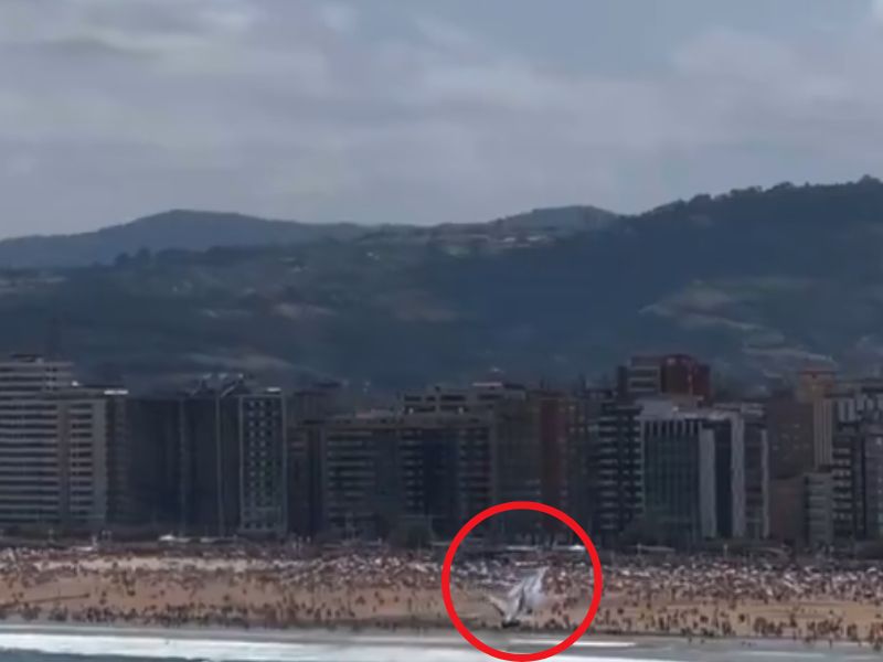 Pohjois-Espanjan Gijónissa järjestetyssä lentonäytöksessä koettiin sunnuntaina vaarallinen tilanne, kun F-18-hävittäjän lentäjä joutui tekemään äkillisen väistöliikkeen välttääkseen törmäyksen lintuparveen.